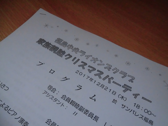 福島中央ライオンズクラブの会員親睦委員会に出席し、家族親睦クリスマスパーティーの打合せを行いました。 大道芸やピアノ演奏等、盛り沢山の内容で計画中です。
