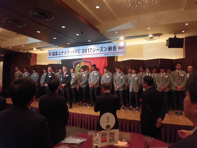 福島ユナイテッドFCの2017シーズン納会に参加しました。 日頃ご活躍の選手の皆様はもちろん、支援企業の皆様や関係者の皆様が参加し、来シーズンの更なる活躍を祈念しました。