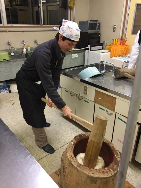ヤングカレッジわたりに参加しました。 今回は、『もちつき』~正月の定番!臼と杵を使ってつきたてのお餅を一緒に食べましょう~で、総勢13名で、つきたてのお餅を楽しみました。