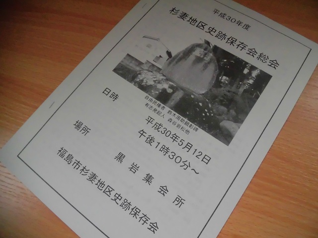平成30年度杉妻地区史跡保存会総会に出席しました。 平成29年度の事業報告や決算報告の後、平成30年度の事業計画や予算等について慎重審議され、全員異議なく全て可決されました。