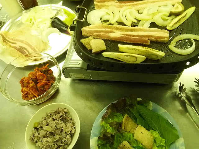 福島市渡利学習センターで行われた、若者のための料理教室に参加しました。 メニューは「うまい!秘伝のタレで作るがっつり焼肉」で、本格韓国料理を楽しみました。