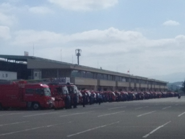 平成30年度福島県消防協会福島支部消防検閲式に参加しました。 1,605名と消防車両57台が参加し、炎天下の中でしたが、無事終了しました。