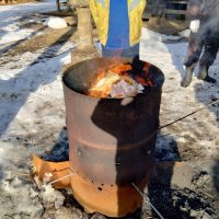 福島市渡利の七社宮神社秋まつりの準備でした。