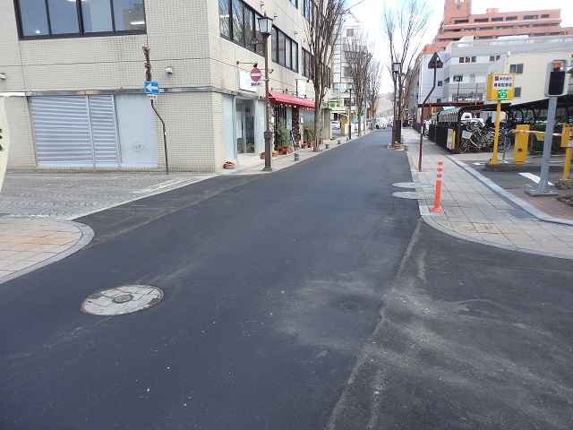道路の凹凸に大きな水たまりができて歩きにくい箇所があるとお伺いし、福島市道路管理課と相談していた箇所ですが、ようやく補修されました。 凹凸の規模が広範囲で時間がかかってしまいましたが、舗装工事がなされました。
