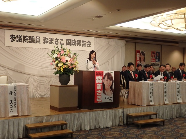 森まさこ参議院議員の国政報告会に参加しました。 山下貴司法務大臣や亀岡偉民衆議院文部科学委員長をはじめ、多くのご来賓が参加する中、盛大に開催されました。