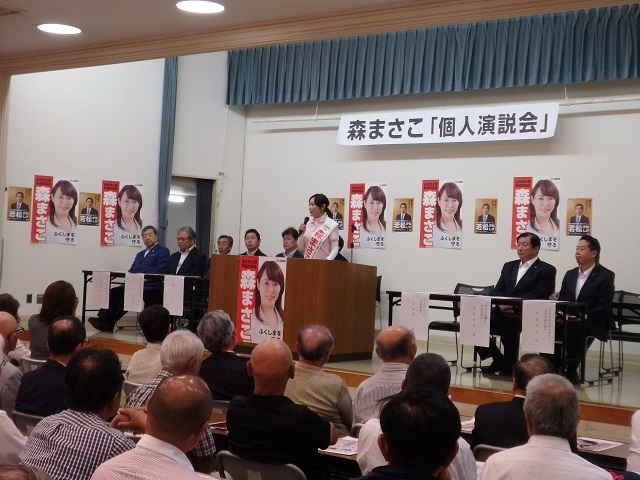 森まさこ参議院議員候補者の個人演説会に参加しました。 松野博一元文部科学大臣や亀岡偉民衆議院文部科学委員長をはじめ、多くのご来賓が参加する中、盛大に開催されました。
