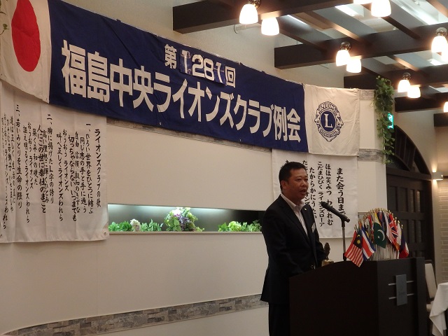 福島中央ライオンズクラブの第1281回例会に出席しました。 今回は、株式会社キスキの来次馨社長による会員スピーチがあり、人工芝の施工やメンテナンス等について伺いました。