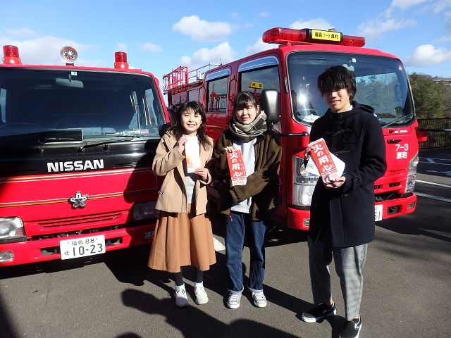 消防団で“火の用心”の札を配布しました。 今回は、インターン生も参加しました。 空気が乾燥する季節は、火災が発生しやすくなります。火の元には十分注意しましょう。火の用心です。