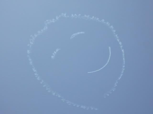 室屋義秀パイロットが福島県内の上空をフライトしながらニコニコマークを描き、福島県民にエールを送りました。天候にも恵まれ、思わず笑顔になるニコニコマークが描かれ、県民を元気づけました。