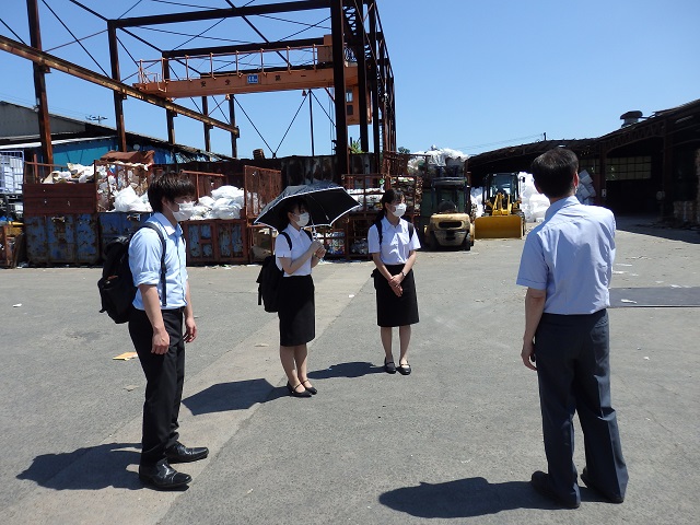 インターン生と、市内で様々なお話を伺って来ました。写真は、産廃業者さんでの一コマ。新聞紙と広告や、段ボールとそれ以外の紙類を仕分けする等、資源リサイクルの過程を説明頂き、課題も学びました。