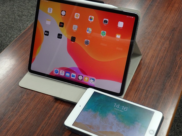 福島市議会タブレット端末研修会に参加しました。福島市議会に導入されたタブレット端末、iPad Proの説明が行われました。タブレット端末は、ペーパーレス化や効率化等に活用されます。写真手前は、同僚議員のiPad mini。