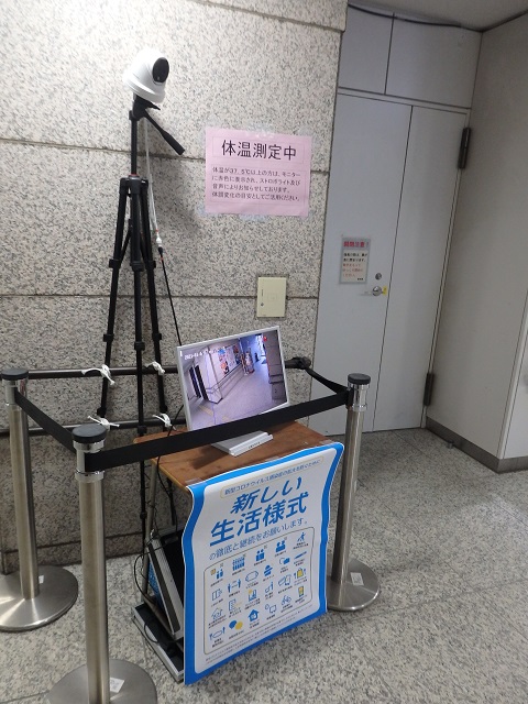 福島市役所本庁舎に、自動で体温測定を行う、サーマルカメラが設置されました。福島市議会令和2年3月定例会議本会議の一般質問で、サーモグラフィの様な設備の設置を提案しましたが、ようやくです。なお、学習センター等にも設置されています。