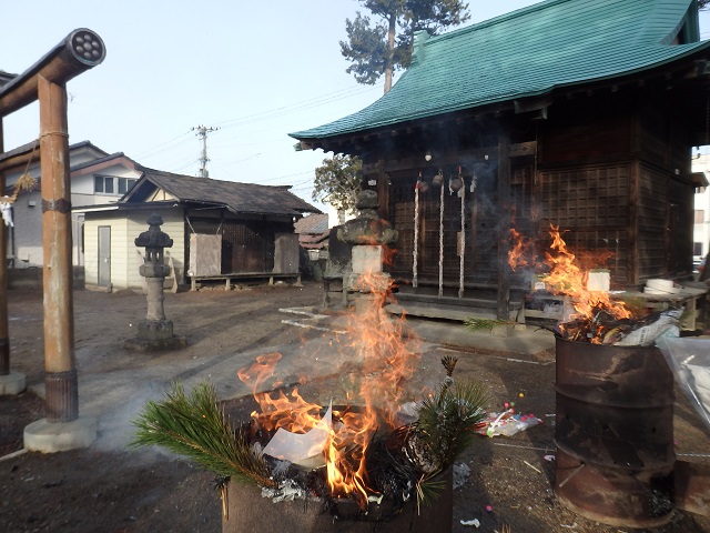 福島市渡利の七社宮神社のどんど焼きに参加しました。