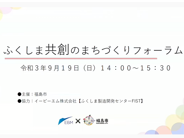 オンラインで行われたふくしま共創のまちづくりフォーラムを視聴しました。福島市内で団体・企業・学校・地域・行政等と事業展開する特定非営利活動法人ビーンズふくしまさんの事例発表「こども食堂『よしいだキッチン』の取り組み」や、パネルディスカッション「オールふくしまで取り組む共創のまちづくり」を通して、「共創」の考え方や取り組みが紹介され、「共創のまちづくり」の機運醸成が図られました。
