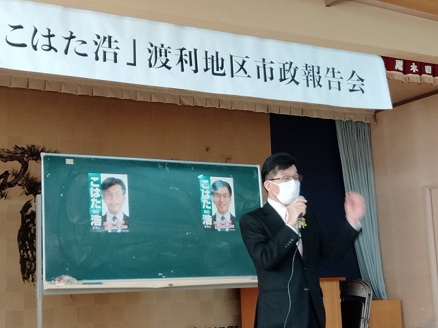 「こはた浩」市長の渡利地区市政報告会に参加しました。私もあいさつし、市長からは、「コロナを越えて 希望の未来を!」と題して、1期4年の実績と2期目の福島の未来について、市政が報告されました。