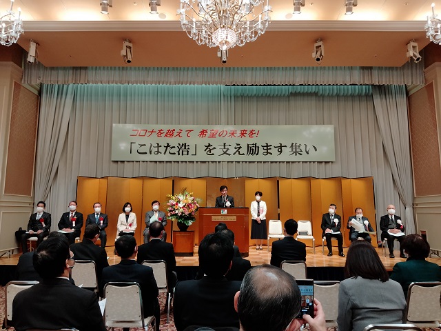 「こはた浩」市長を支え励ます集いに参加しました。多くのご来賓が参加する中、来賓挨拶等の後、木幡市長からこれまでの実績や福島の未来について、市政報告がなされました。