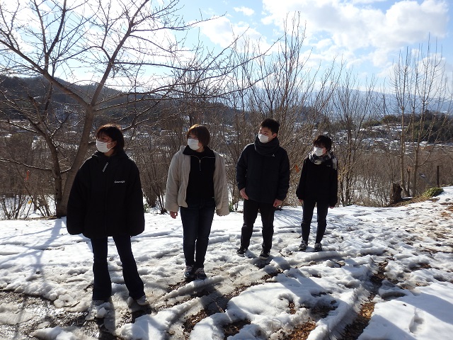 写真は、花見山周辺での一コマ。地域振興策等について学びました。
