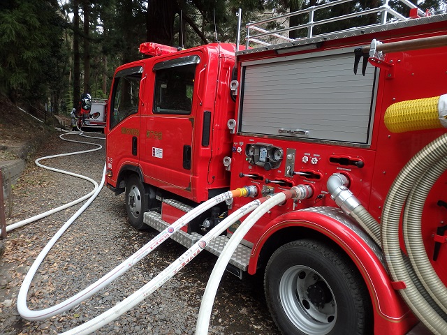 消防団放水訓練の準備