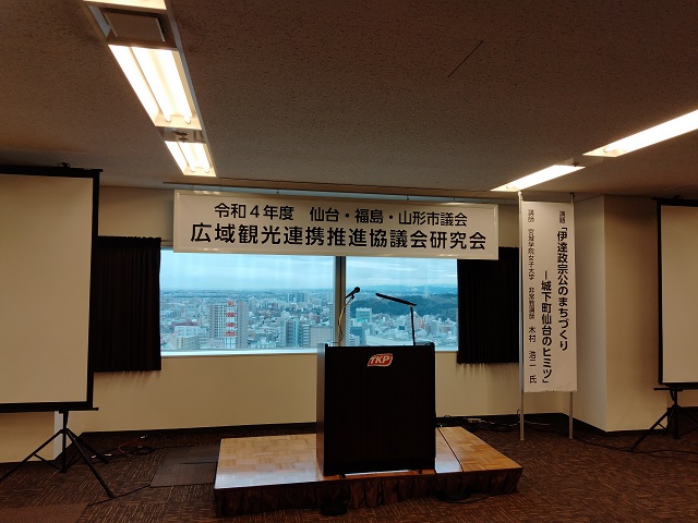 仙台・福島・山形市議会広域観光連携推進協議会令和4年度研究会に出席しました。「伊達政宗のまちづくり‐城下町仙台のヒミツ」と題したご講演があり、政宗公のまちづくりに学び、明日のまちづくりに活かすことができる、大変勉強になる内容でした。
