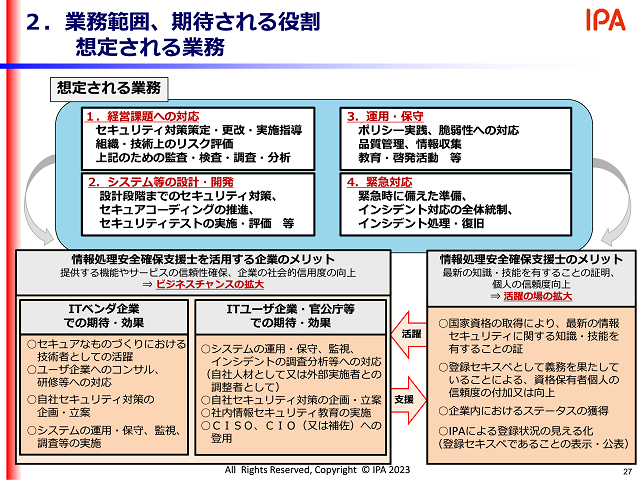 国家資格『情報処理安全確保支援士』がわかる!説明会(オンライン)に参加しました。独立行政法人情報処理推進機構(IPA)の主催で、制度の仕組みや登録手続きの方法、そして資格活用例や登録のメリット等について、体系的にご説明頂きました。