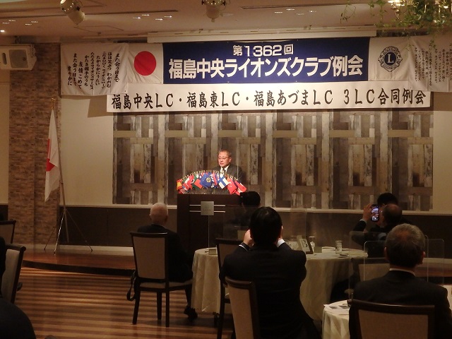 福島中央ライオンズクラブの第1362回例会に出席しました。今回は、福島中央だけでなく、福島東と福島あづまとの3クラブ合同例会で、聖光学院高等学校野球部の斎藤智也監督によるゲストスピーチも行われ、甲子園の貴重なお話をお伺いしました。