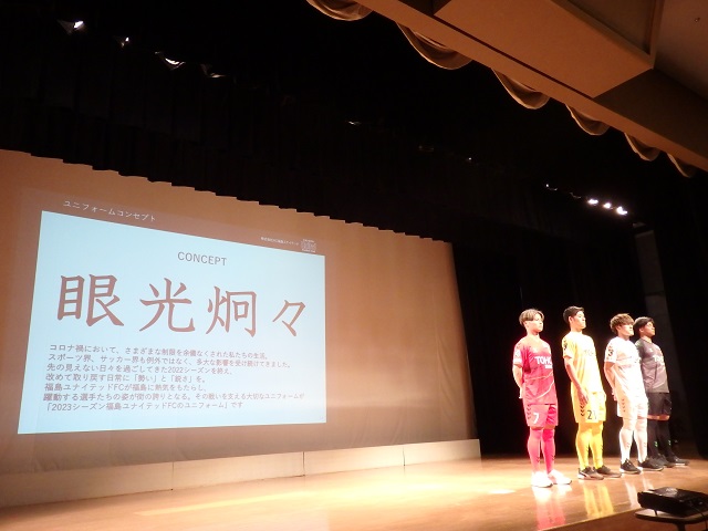福島ユナイテッドFC 2023シーズン結団式に参加しました。日頃ご活躍の選手の皆様はもちろん、関係者の皆様や支援企業の皆様が参加し、2023シーズンの活躍を祈念しました。また、新しいユニフォームが披露されました。