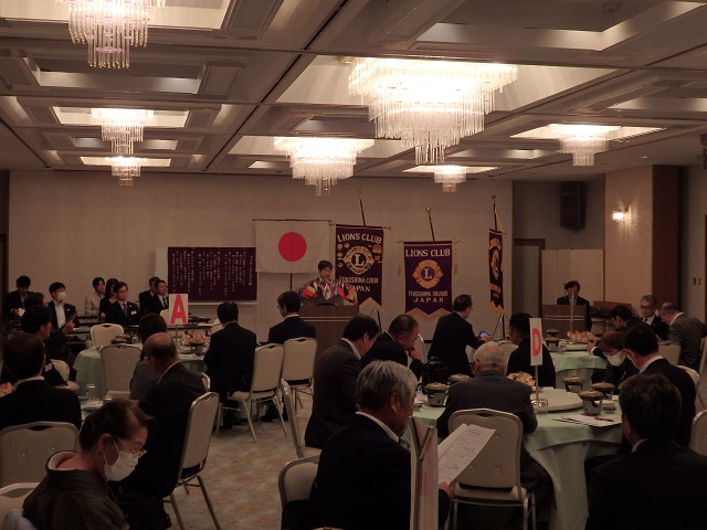 福島中央ライオンズクラブの第1375回例会に出席しました。今回は、福島中央だけでなく、福島東と福島あづまとの3クラブ合同例会で、和のひびき・夢弦大の皆さんによる津軽三味線のアトラクションも行われ、盛大に開催されました。