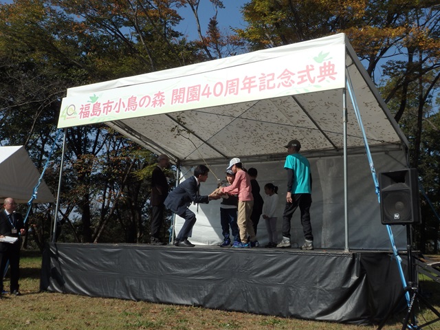 福島市小鳥の森開園40周年記念式典に出席しました。福島市小鳥の森は、日本で最初の自治体が設置する森林型サンクチュアリとして昭和58年11月1日に開園しました。今年で40周年を迎え、式典では植樹用苗木贈呈等も行われ、式典後は体験イベントも開催されました。