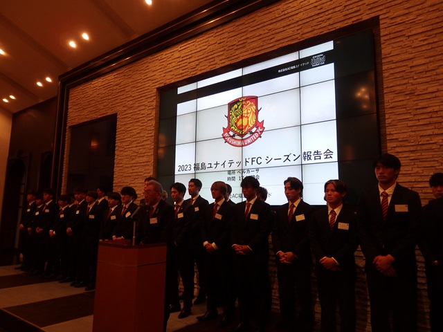 福島ユナイテッドFC 2023シーズン報告会に参加しました。日頃ご活躍の選手の皆様はもちろん、支援企業の皆様や関係者の皆様が参加し、来シーズンの活躍を祈念しました。