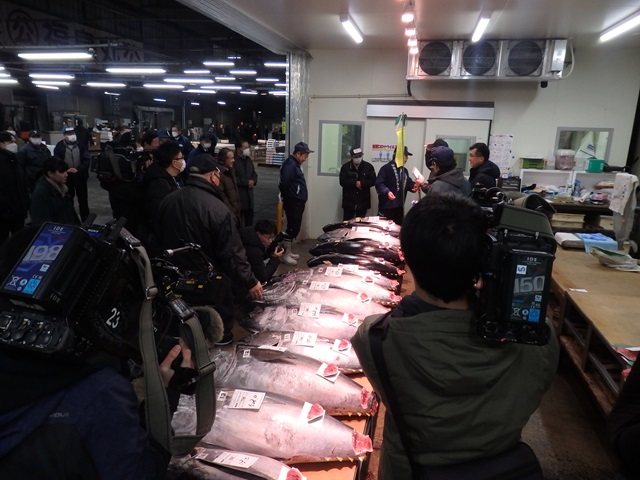 令和6年福島市公設地方卸売市場初せり式に出席しました。早朝から水産部、青果部、花き部の初せり式が順に行われ、威勢の良い掛け声が響き、商売繁盛を祈願しました。