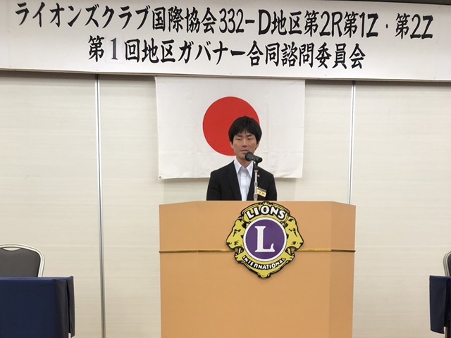 ライオンズクラブ国際協会332-D地区第2R第1Z・第2Z第1回地区ガバナー合同諮問委員会に出席しました。各ゾーン別諮問委員会後の全体会議で、YCE委員会の報告を行いました。