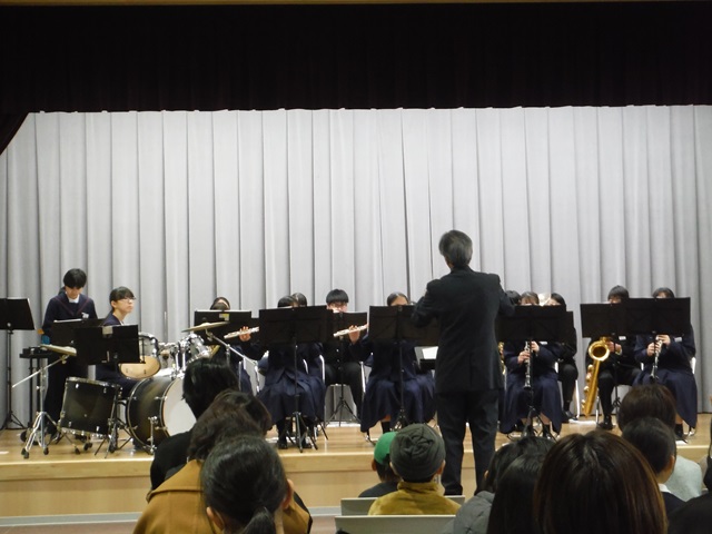 福島市中央学習センターの地域学校協働本部事業の一環としても開催されたもので、プログラム順に福島市立福島第三小学校特設音楽部と福島市立福島第二小学校特設合唱部の皆さんによる合唱と、福島市立福島第四中学校吹奏楽部と福島市立福島第二中学校吹奏楽部の皆さんによる合奏が行われ、市民センターのオープニングにふさわしい素晴らしいコンサートとなりました。