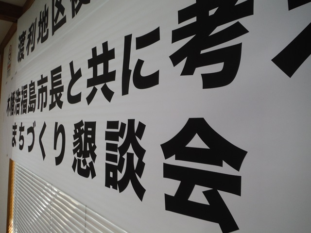 渡利地区で開かれた、木幡浩福島市長と共に考えるまちづくり懇談会に出席しました。市長からの「世界にエールを送るまちふくしまを目指して」と題した市政報告を兼ねたあいさつ後、市政各般について活発に意見が交換されました。
